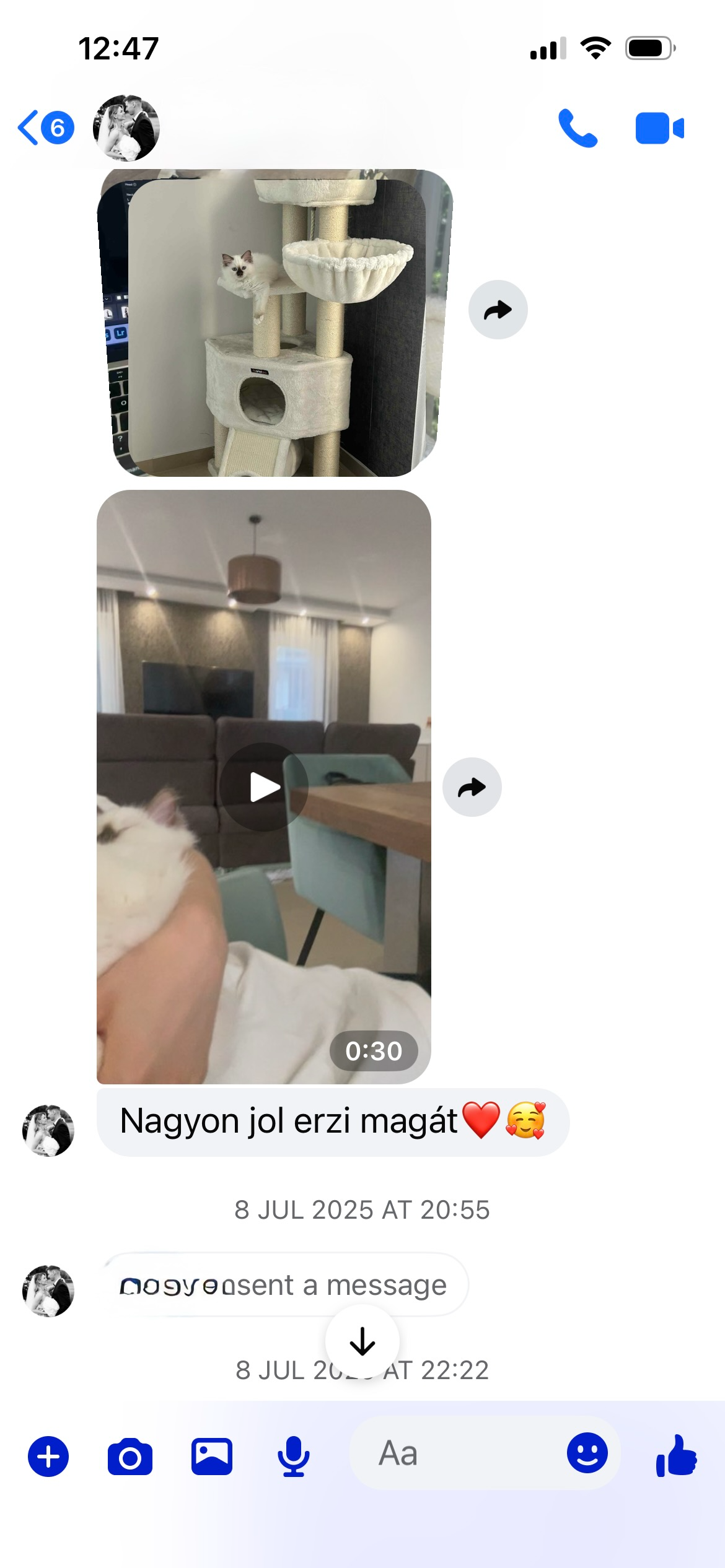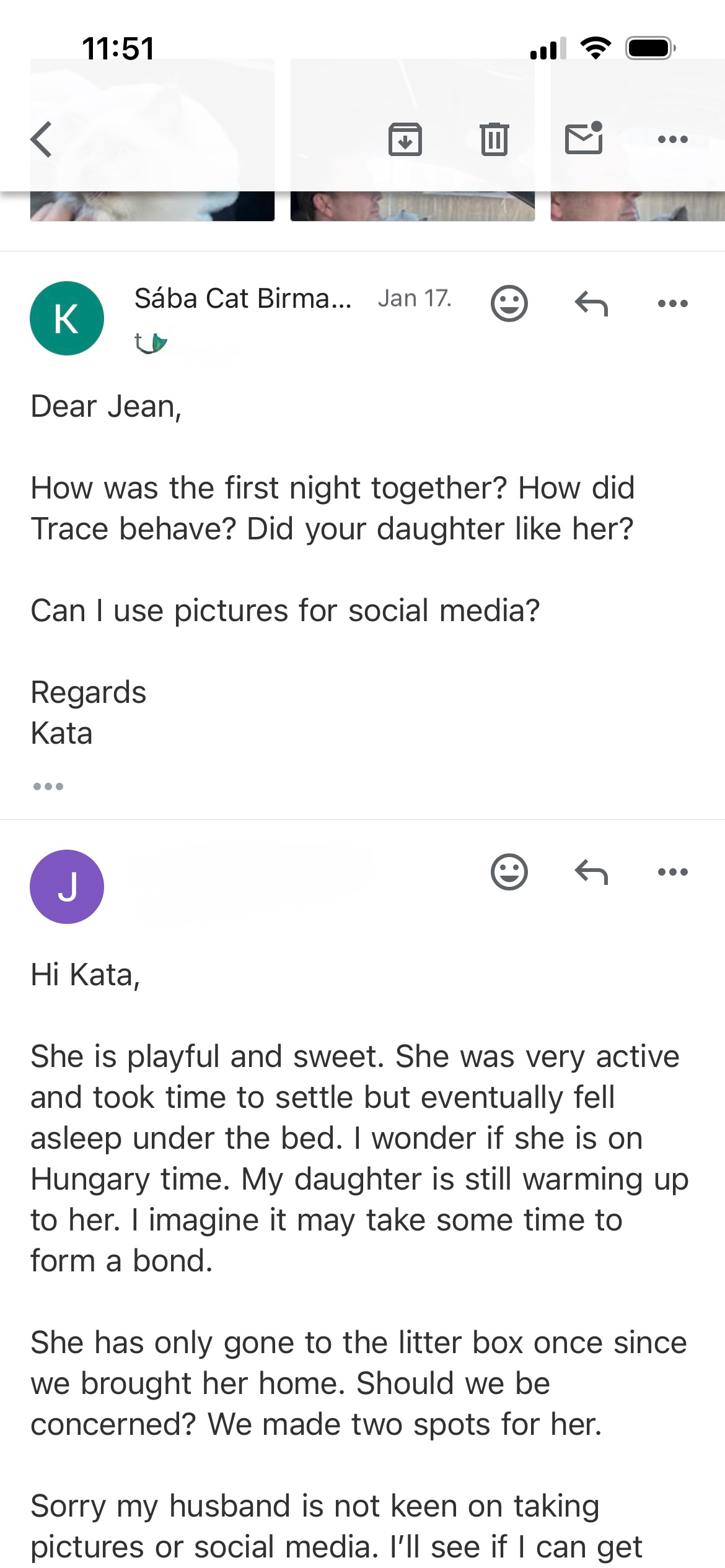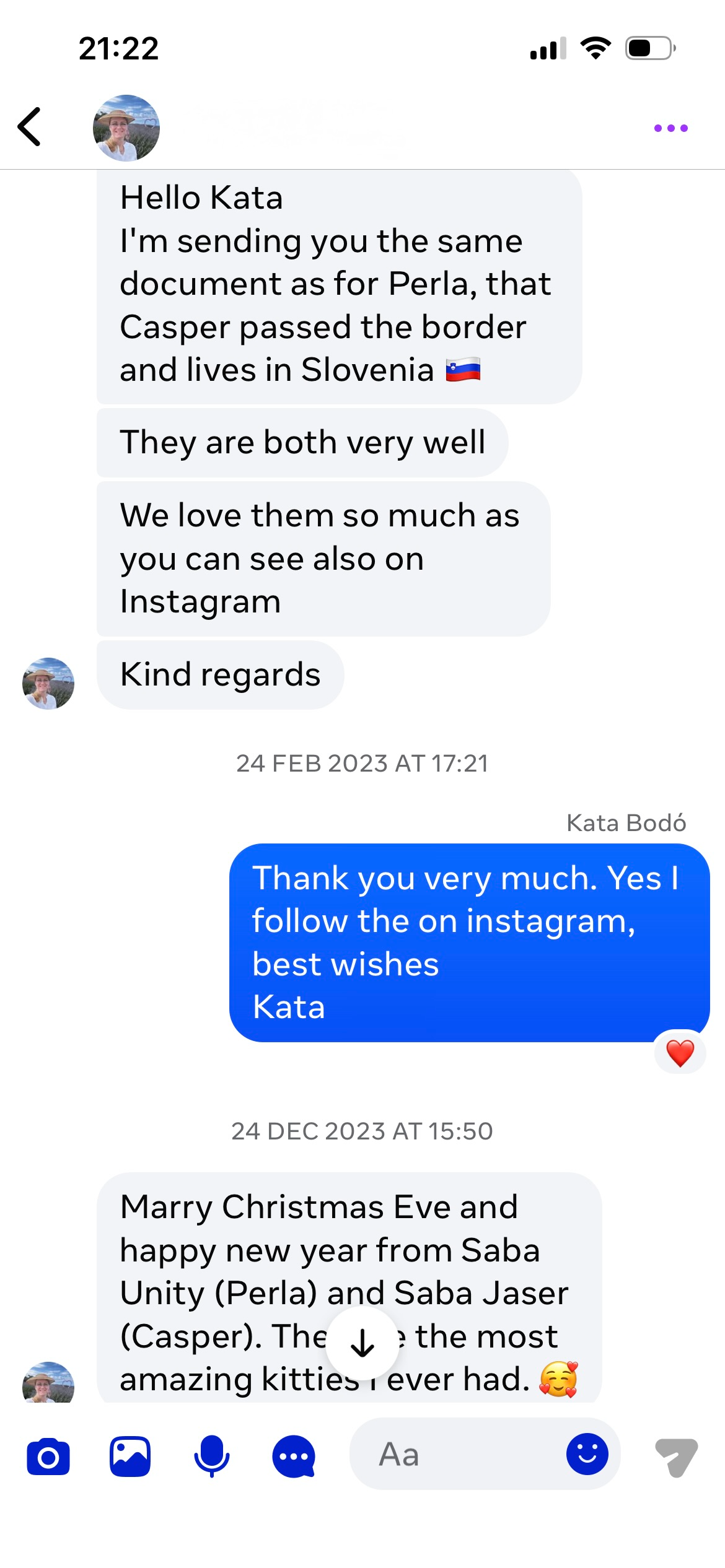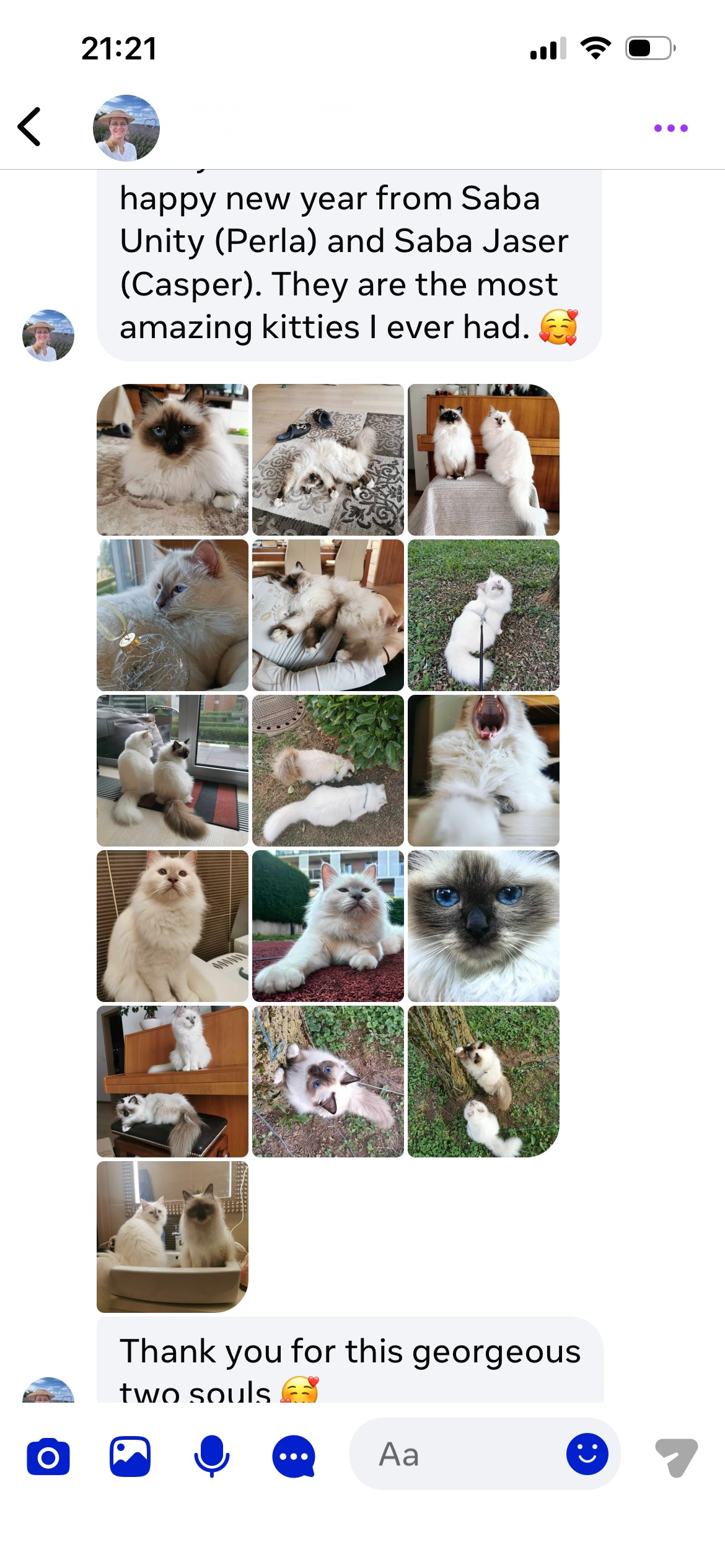 Au fil des années, la famille a régulièrement envoyé des nouvelles et des photos — montrant les enfants grandir, et les chats toujours présents à leurs côtés.