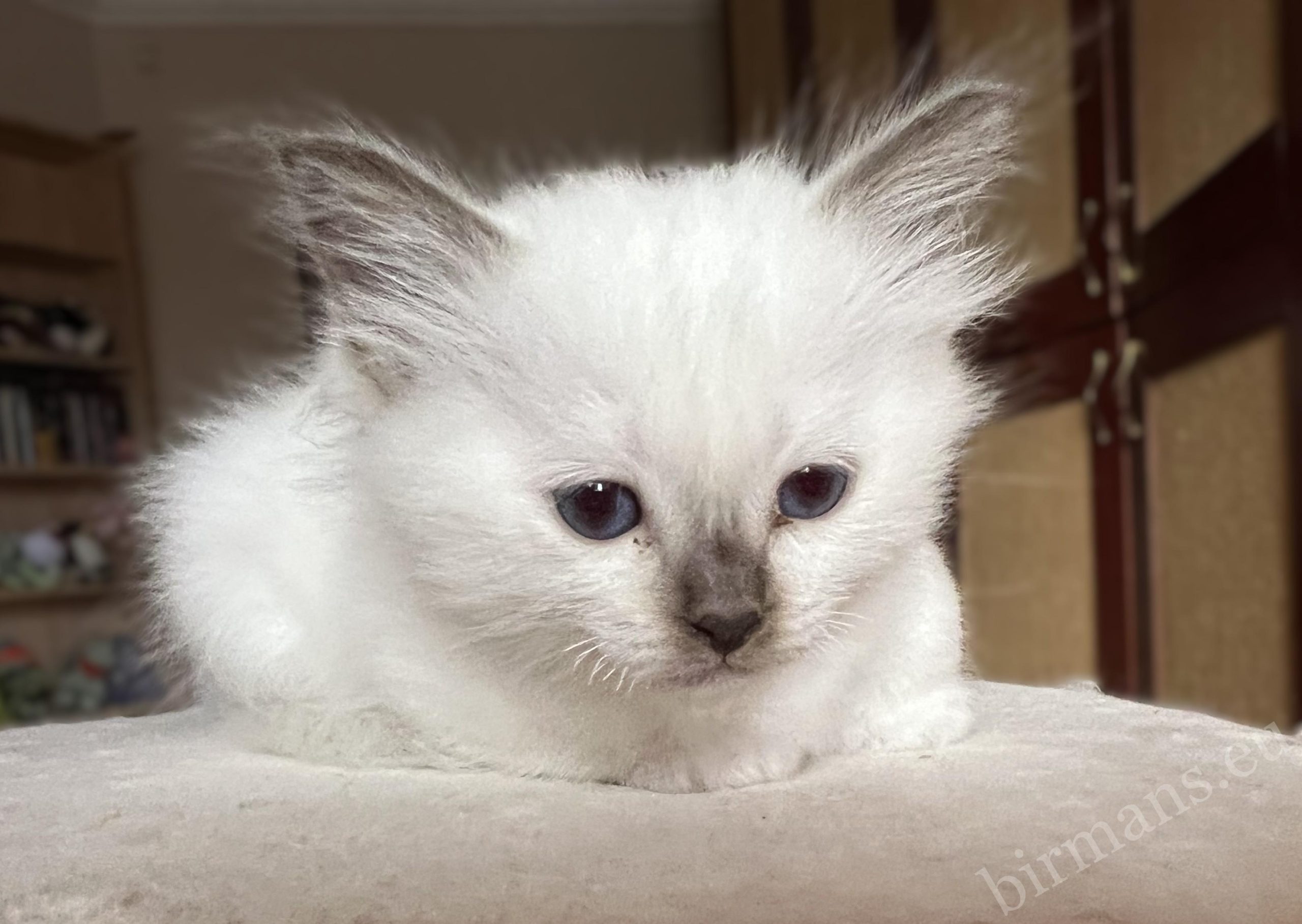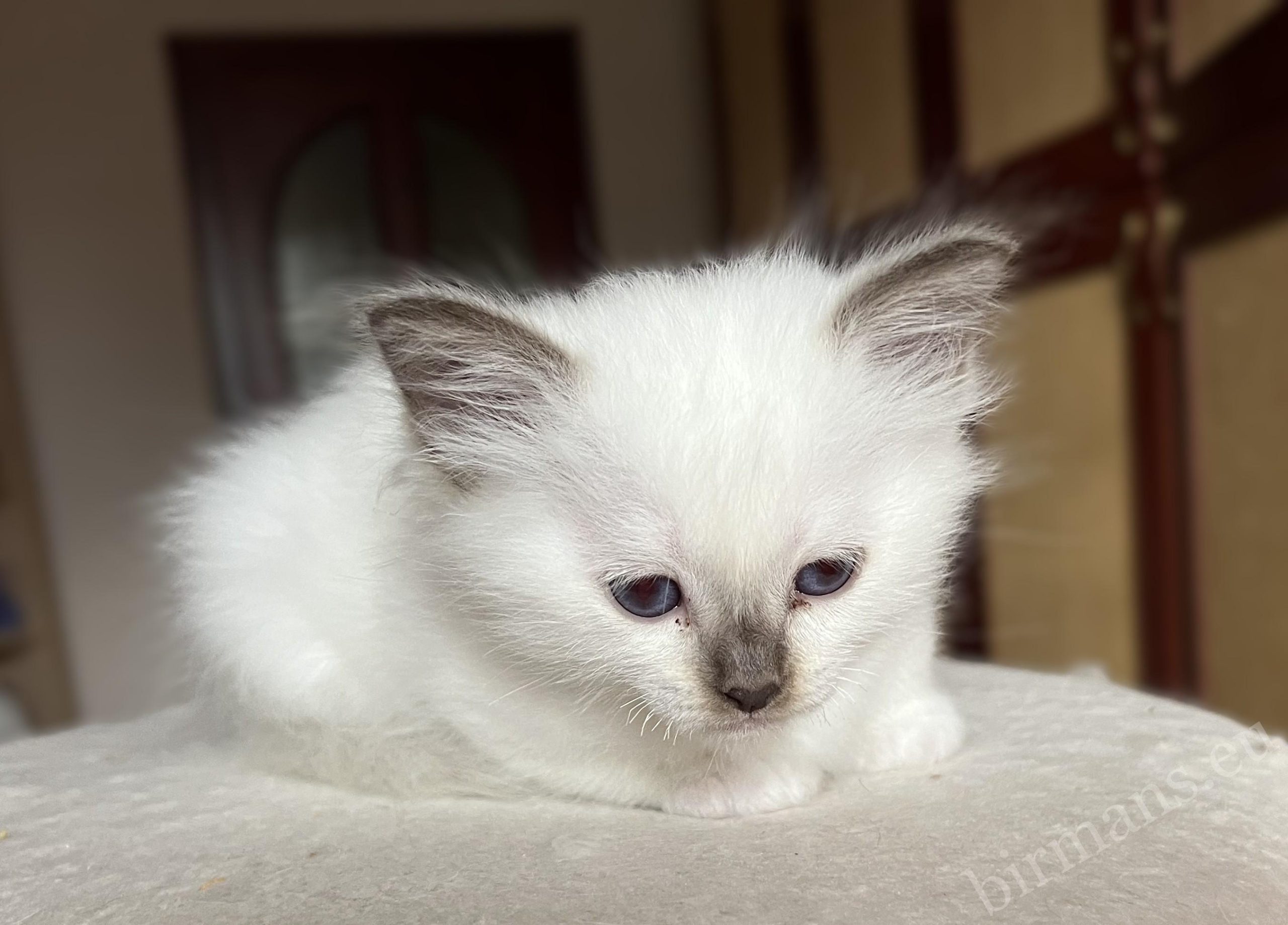 Saba Vela est une chatteon Birman à l’âme très délicate, de nature calme et non dominante. Sa présence douce et équilibrée est déjà perceptible ; elle n’est pas envahissante, mais plutôt du type à se lier discrètement.