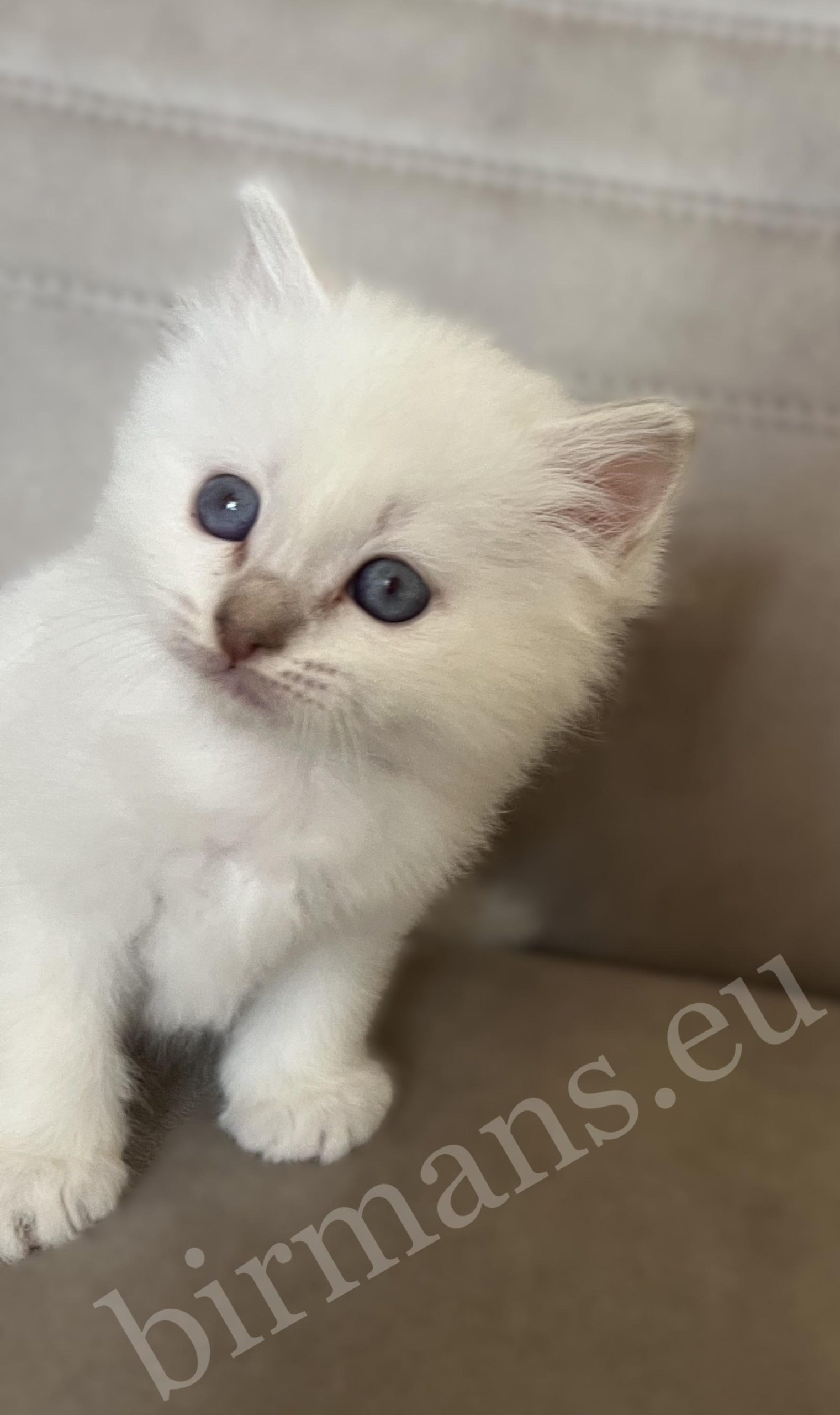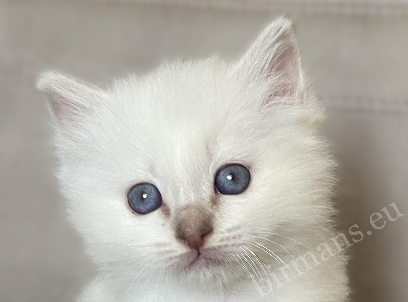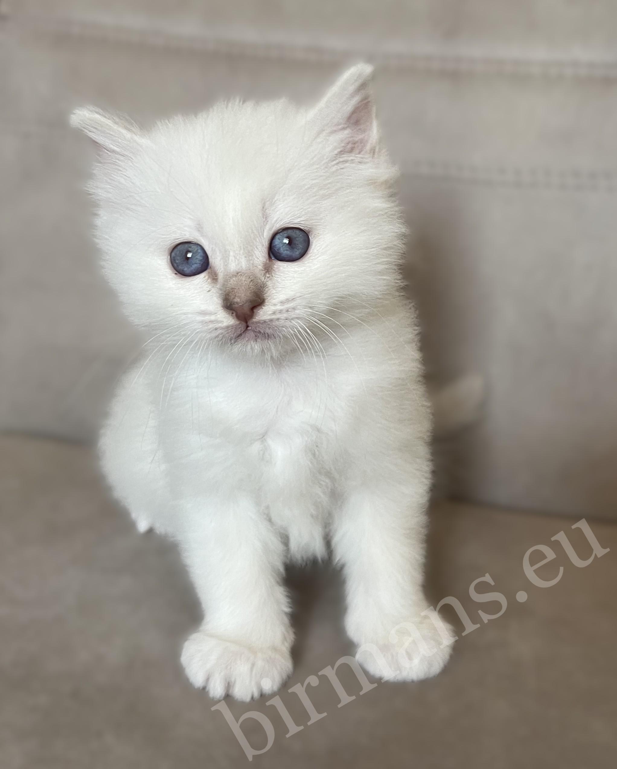 Saba Whisper est le chaton mâle Birman le plus grand et le plus courageux de la portée. Il évolue avec assurance dans son environnement, explore avec curiosité ce qui l’entoure et se positionne naturellement comme un leader parmi ses frères et sœurs.