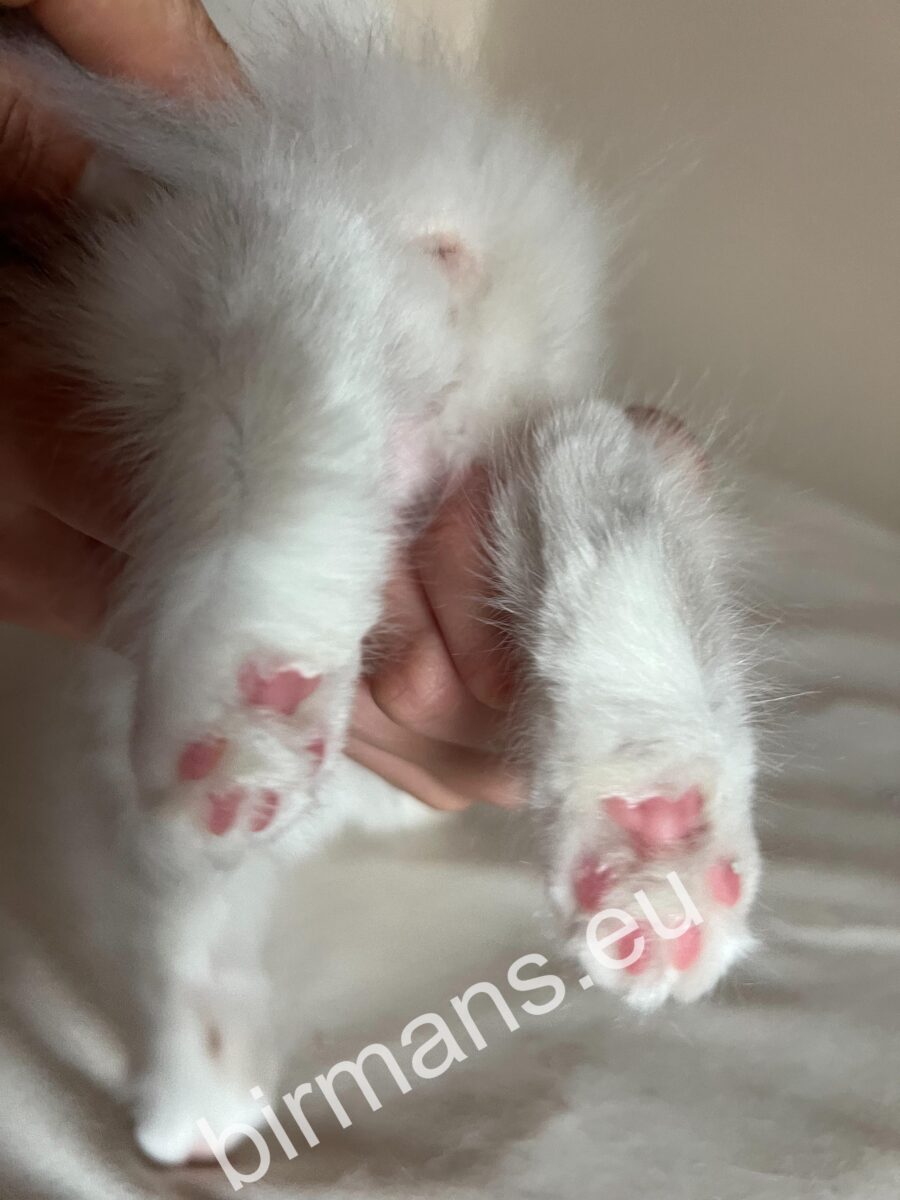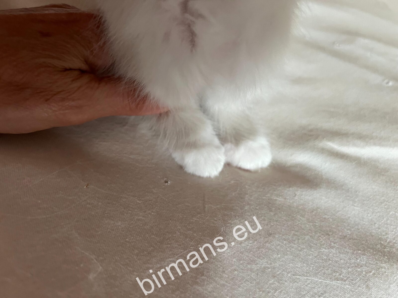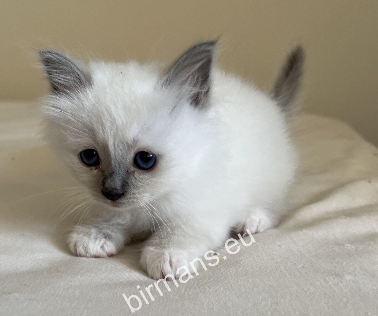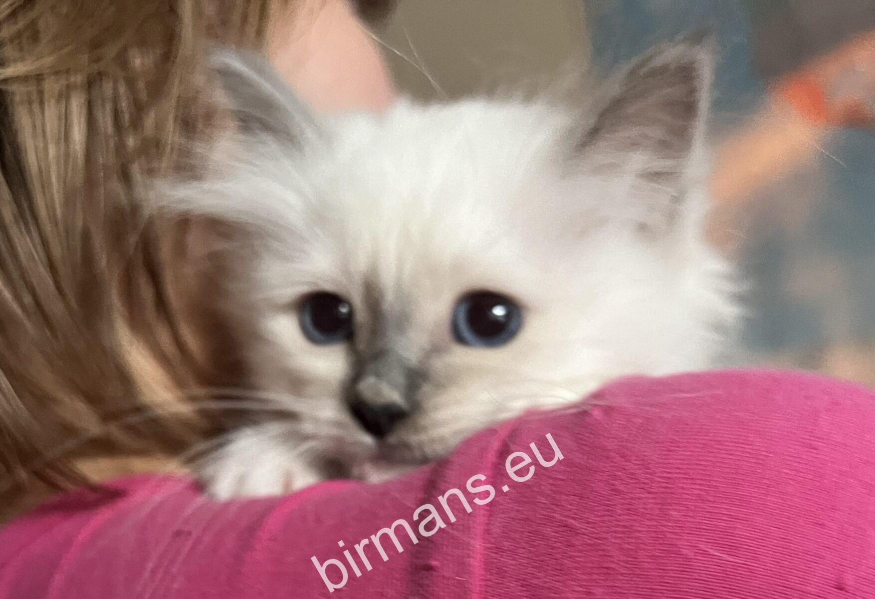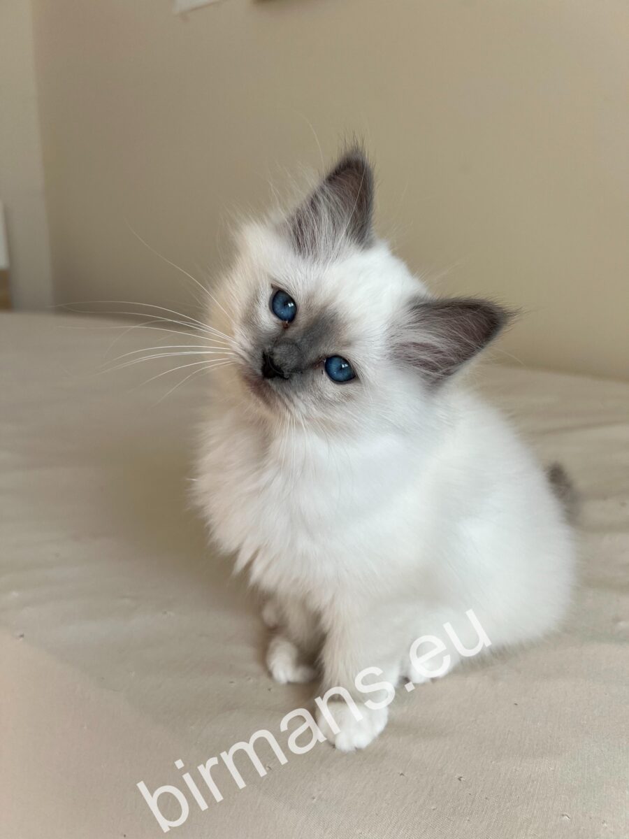 Cette perle porte la beauté distinguée de la variété Birman avec une perfection étonnante : son motif de points bleus et ses notes de présentation raffinées sont impressionnants en eux-mêmes. Bien qu’il semble réticent au début, lorsqu’il se calmera, il se jettera à terre – et votre cœur – pour un petit câlin. C’est le choix idéal pour les éleveurs qui recherchent une qualité exceptionnelle et pour ceux qui se préparent à une carrière dans l’exposition, pour qui le calme et l’élégance sont importants.