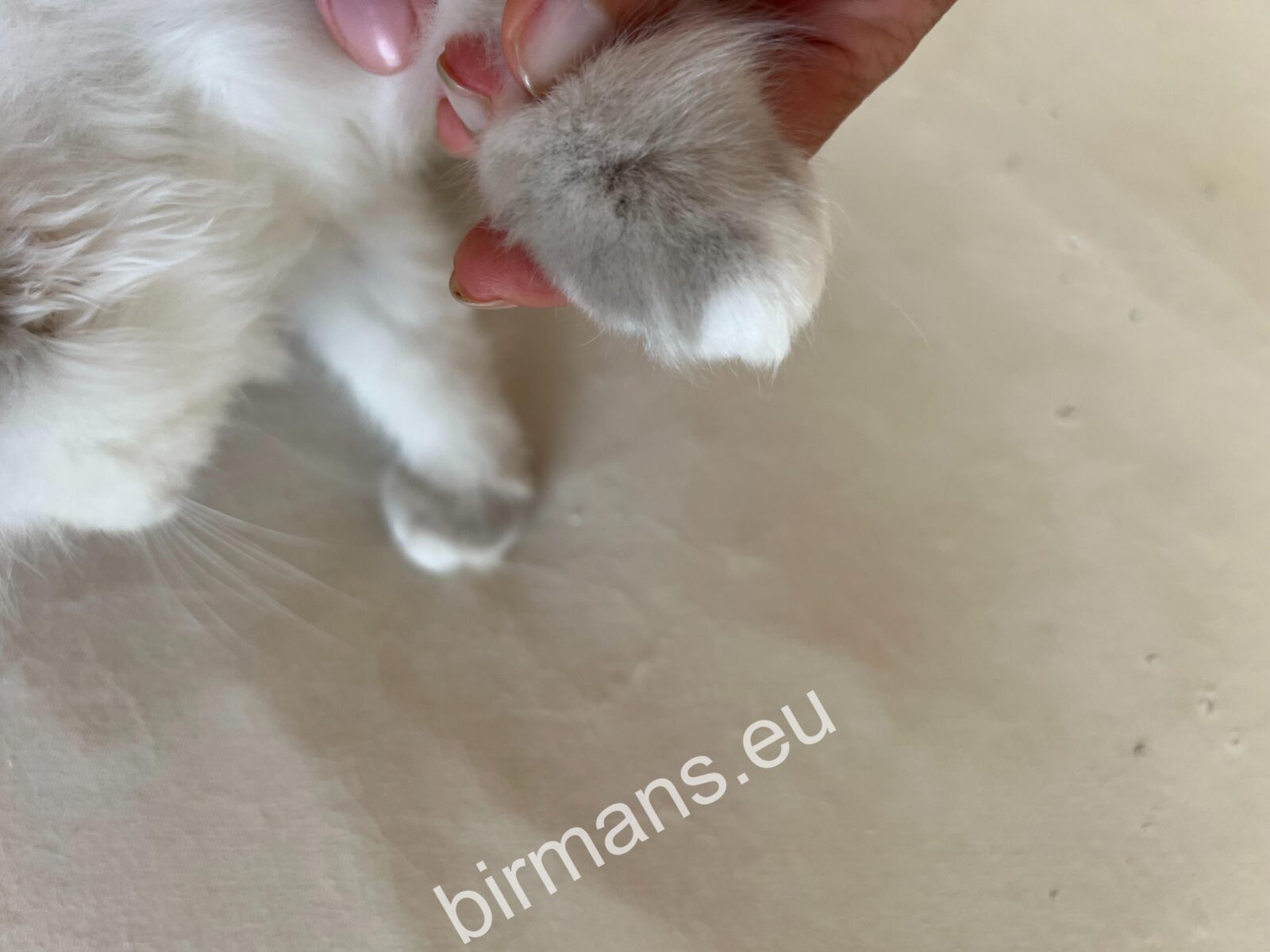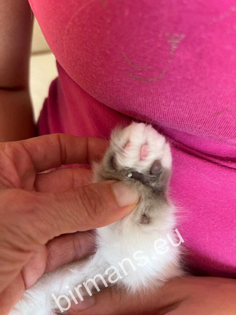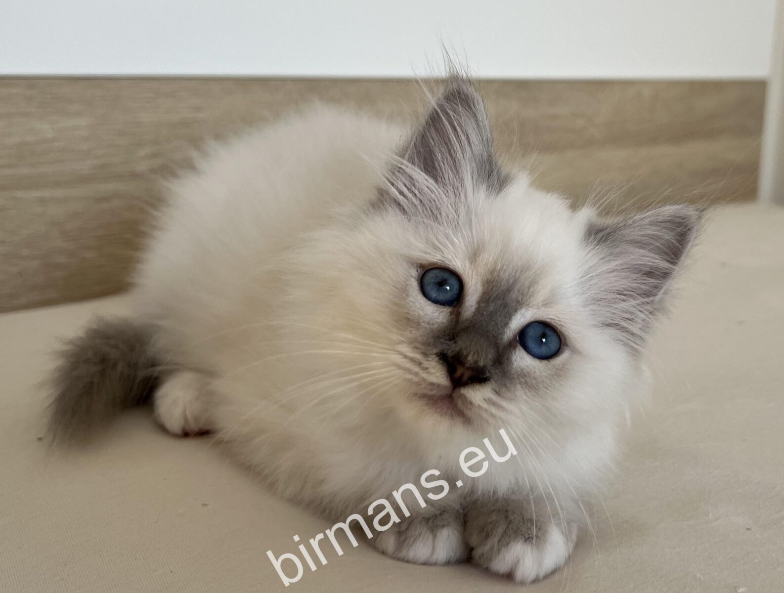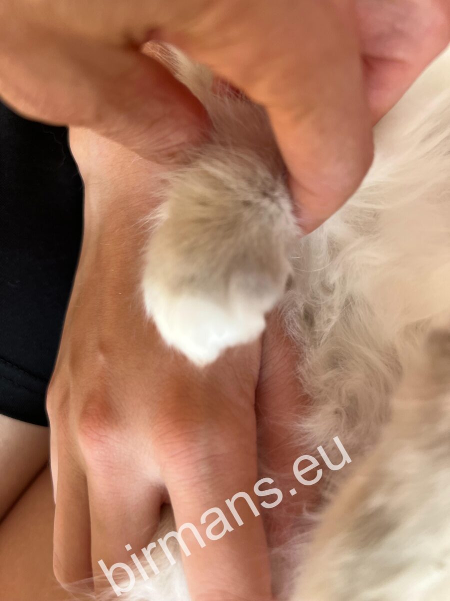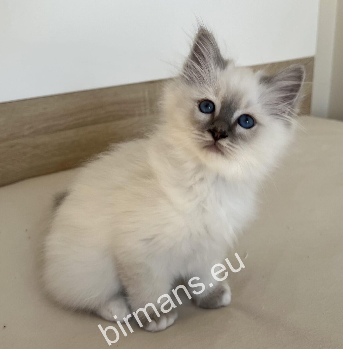 Avec son tempérament joyeux et sa curiosité ludique, Saba Nolan apportera déjà un sourire à votre journée. Il a été le premier à découvrir la portée et à la montrer à ses frères et sœurs comme un outil pédagogique – un vrai leader dans une petite boule de poils. Ses yeux inquisiteurs, son doux pelage bleu tabby et sa nature affectueuse font de lui le parfait compagnon de qualité du chat Birman.