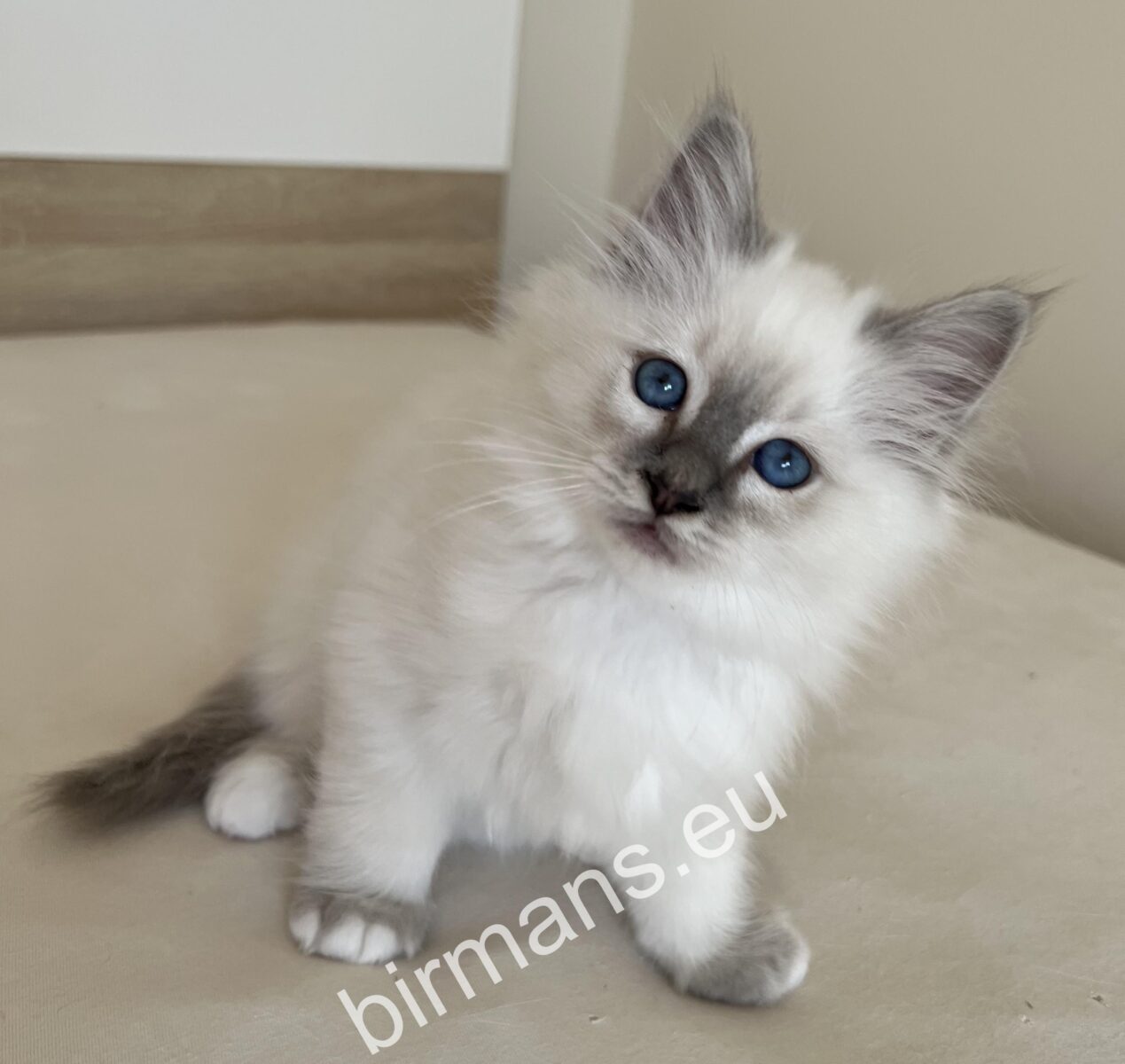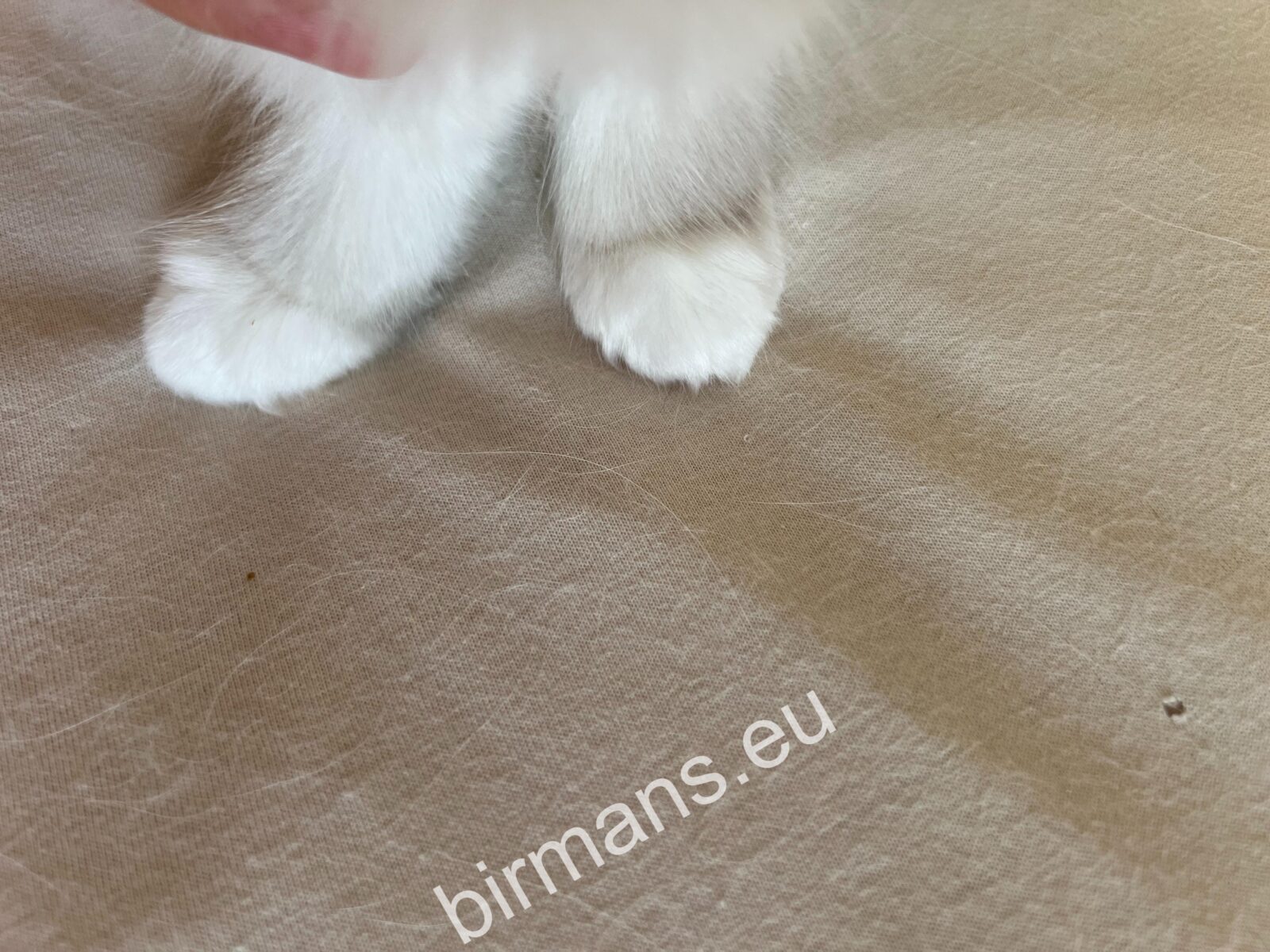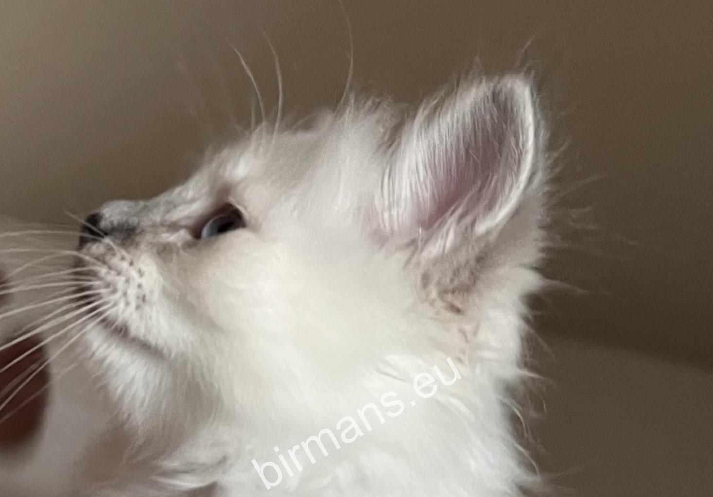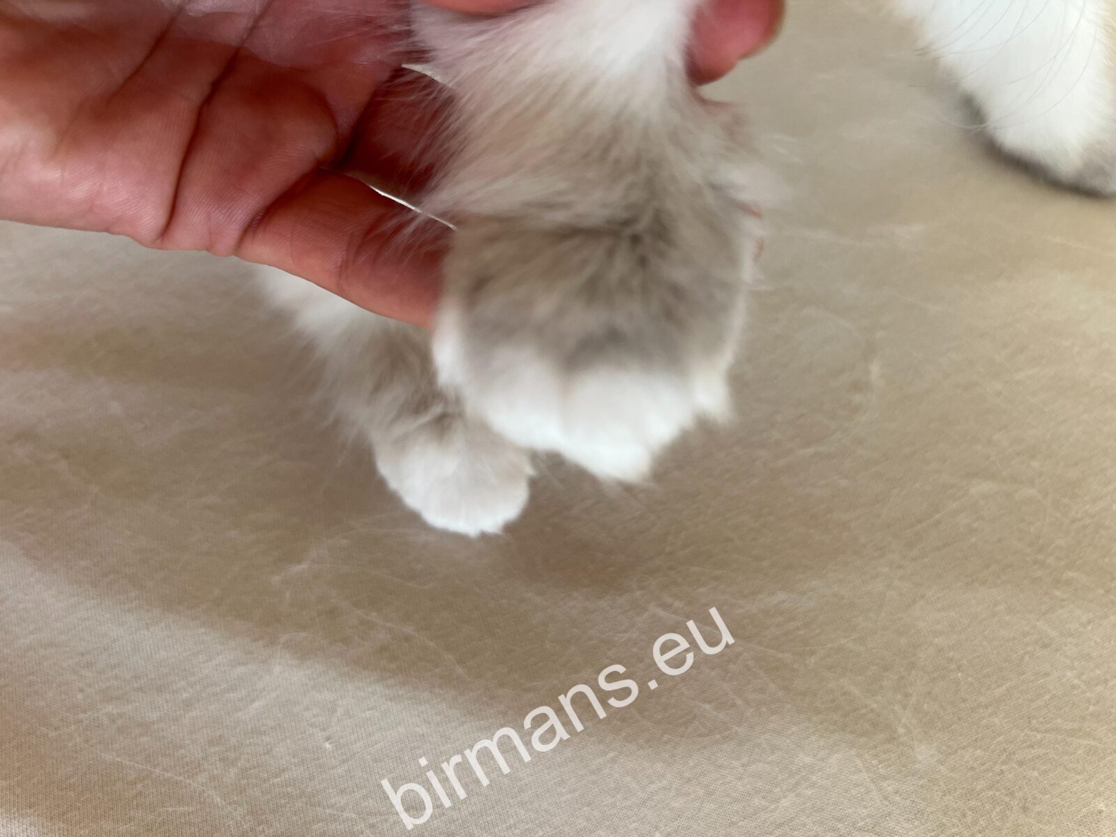 Avec son tempérament joyeux et sa curiosité ludique, Saba Nolan apportera déjà un sourire à votre journée. Il a été le premier à découvrir la portée et à la montrer à ses frères et sœurs comme un outil pédagogique – un vrai leader dans une petite boule de poils. Ses yeux inquisiteurs, son doux pelage bleu tabby et sa nature affectueuse font de lui le parfait compagnon de qualité du chat Birman.