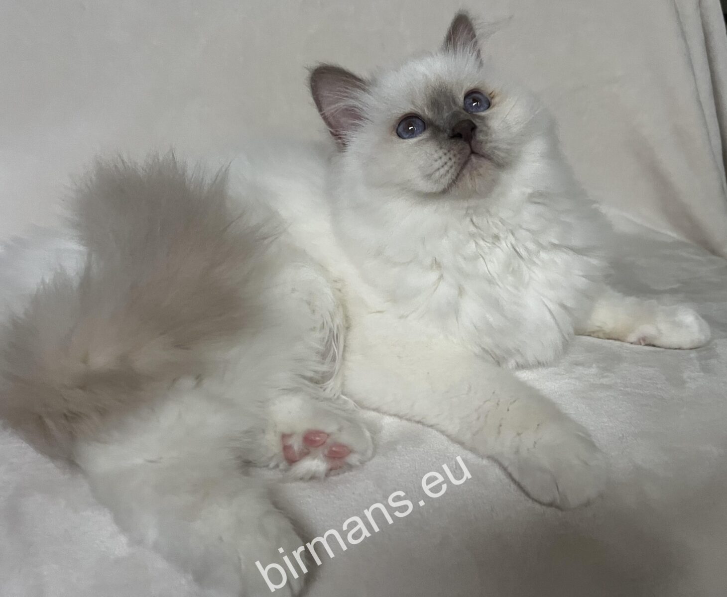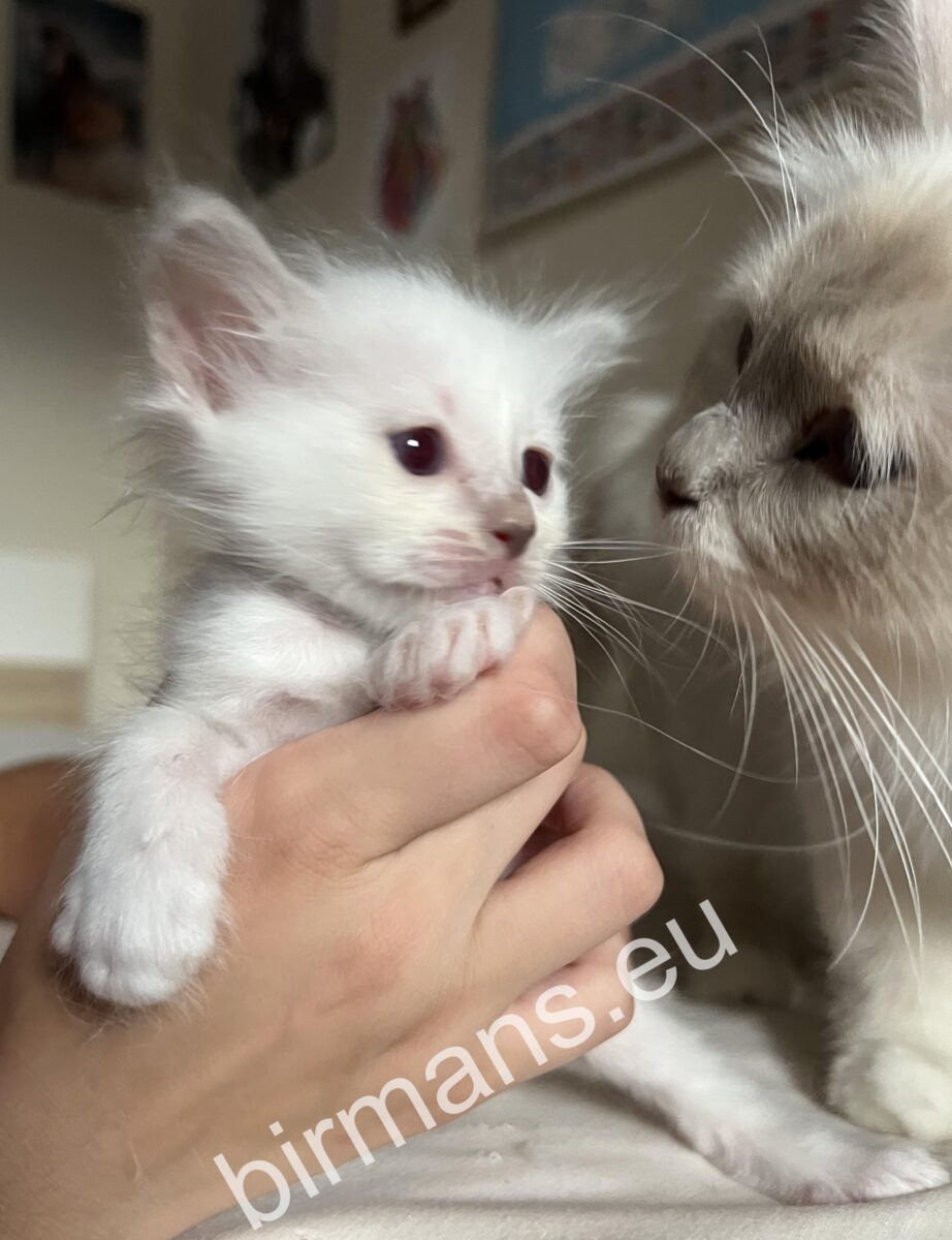 Saba Onyx est un petit garçon spécial, doux et câlin – le compagnon idéal pour les familles et ceux qui recherchent le regard paisible et bleu profond d’un chat de Birmanie.