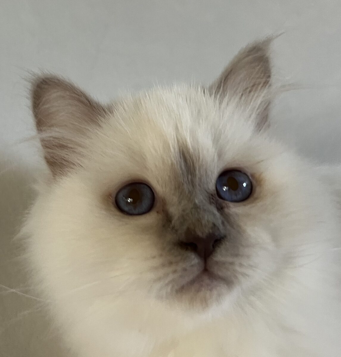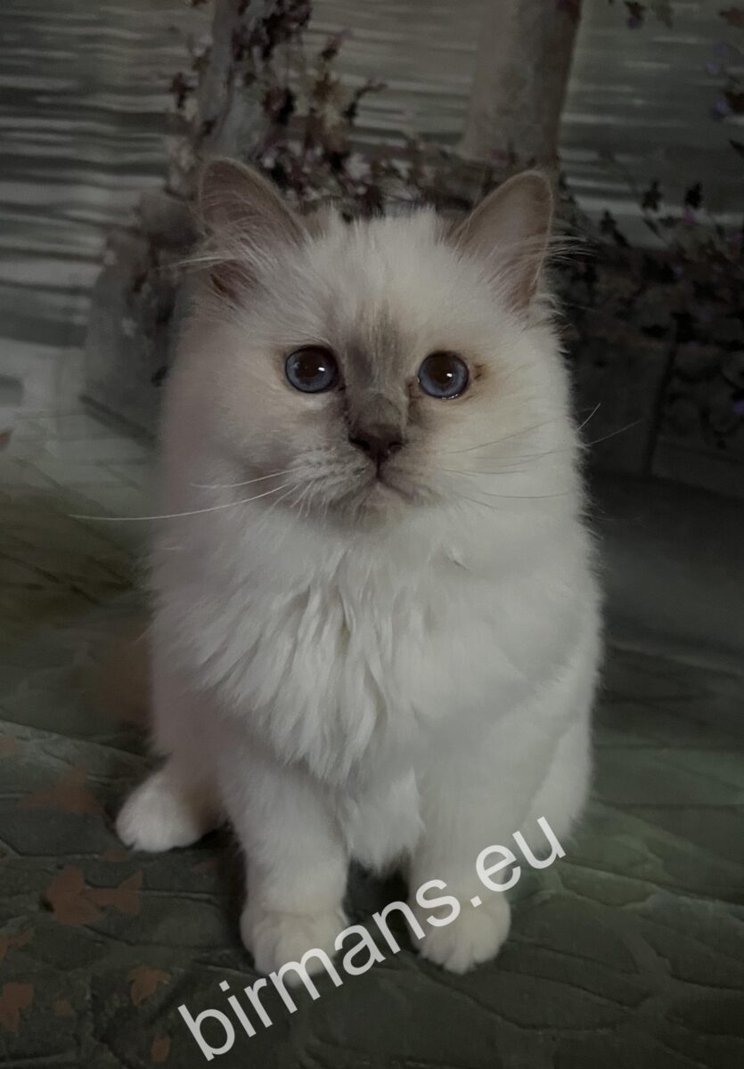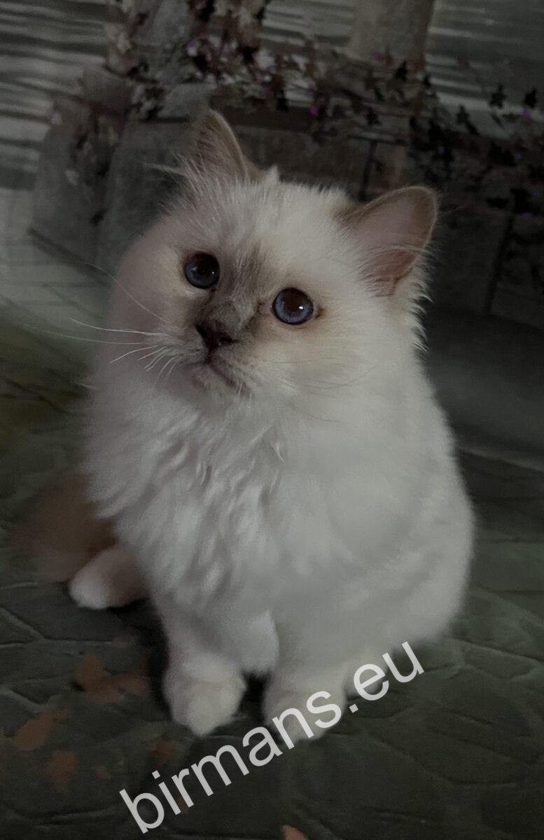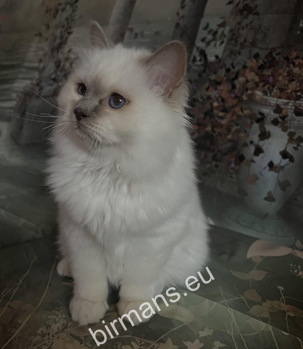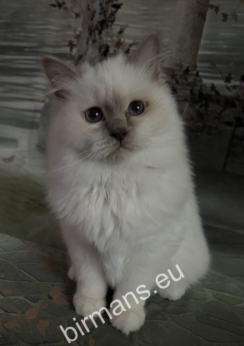 Saba Onyx est une belle et élégante femelle Birman Purple Point avec des yeux d’un bleu profond et brillant et des pointes parfaitement contrastées. Sa présence calme et paisible est immédiatement attirante – c’est le genre de chat qui se blottit tranquillement contre vous et crée l’harmonie autour de vous.
